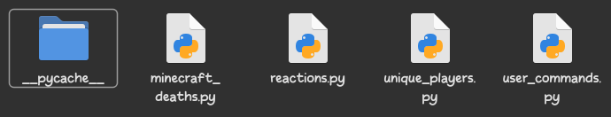 The next issues are mostly complaints, but a problem I had that I could not solve for hours was that my separate Discord functional files (called cogs) would not load more than two, and I have a total of four. This turned out to be an issue with Python caching the bytecode of the unchanged cogs and would, for some reason, not load the files, despite Python recognizing they were present. I still have no idea why this was an issue, and hopefully, some nerd can explain to me.